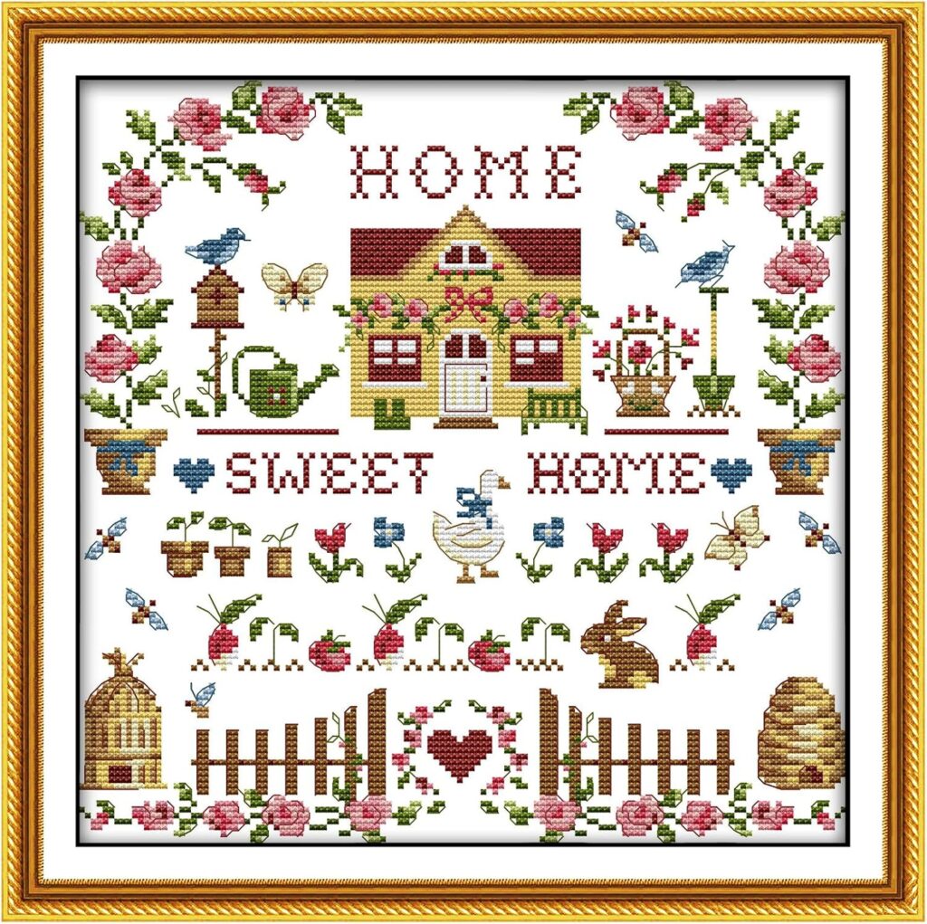 One piece, with its comforting message of “Home Sweet Home”, is a beautiful reminder of enduring connections and the love that binds us. Both are framed simply, allowing the intricate needlework and heartfelt messages to shine.