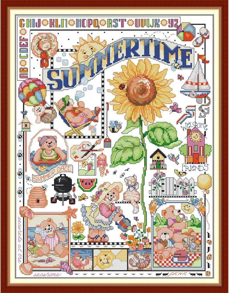 Summertime always makes me smile! (I think that’s a song lyric). There are so many kits to choose from. And these come in large print, small print and no print (blank cloth) variations. This provides great options for everyone and every age.
