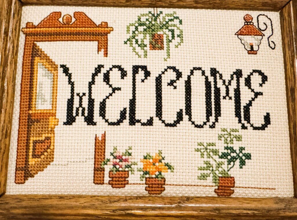 There’s something truly special about items that carry a story, especially when they’ve been lovingly crafted by hand and passed down through generations. In our home, our guest bedroom holds a particularly warm spot in my heart, thanks to two beautiful pieces of handmade stitchery that now adorn its walls.